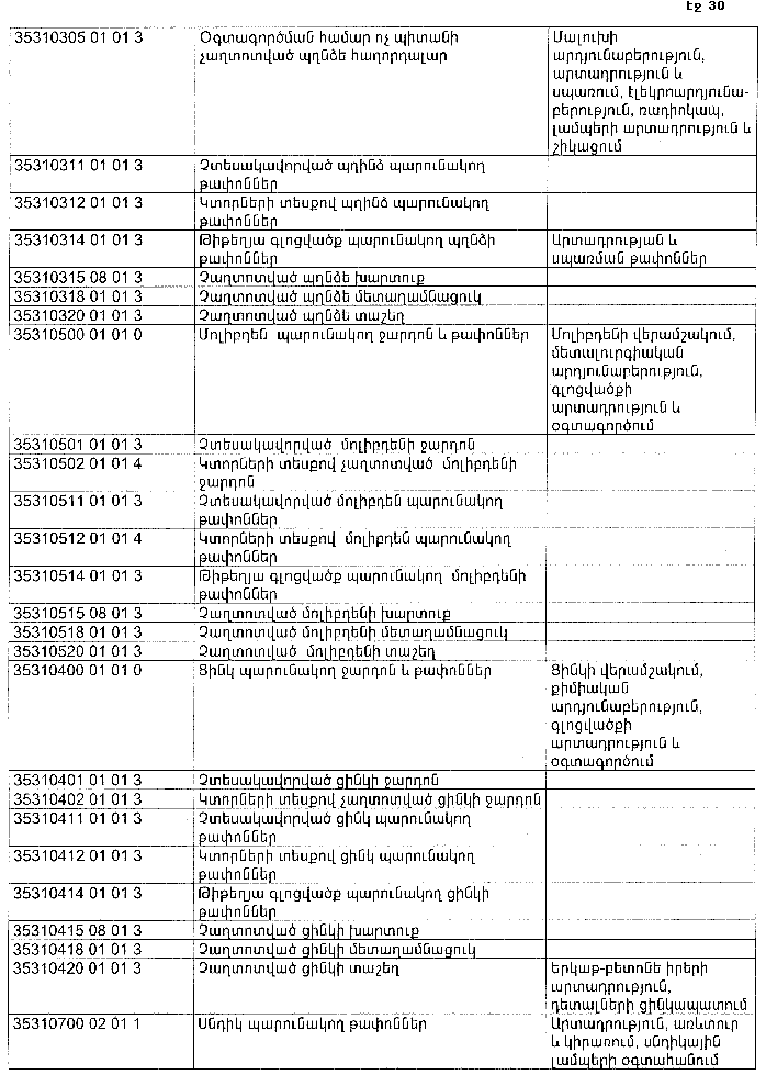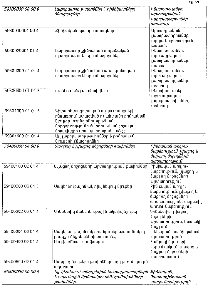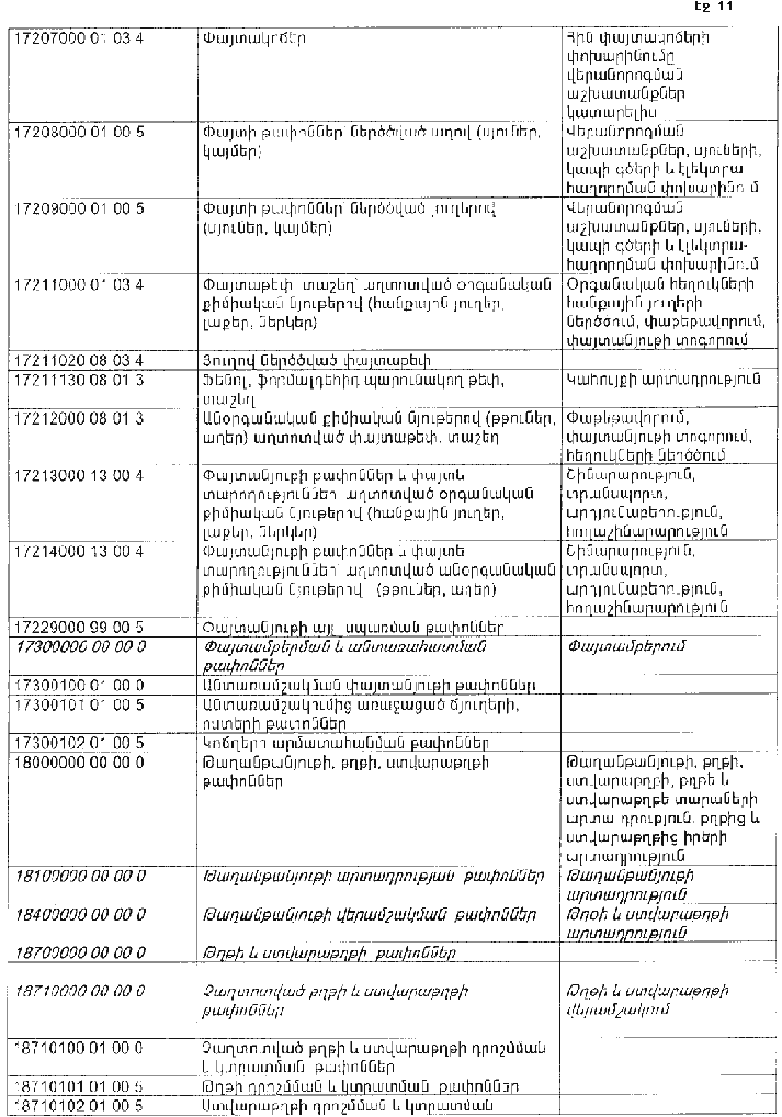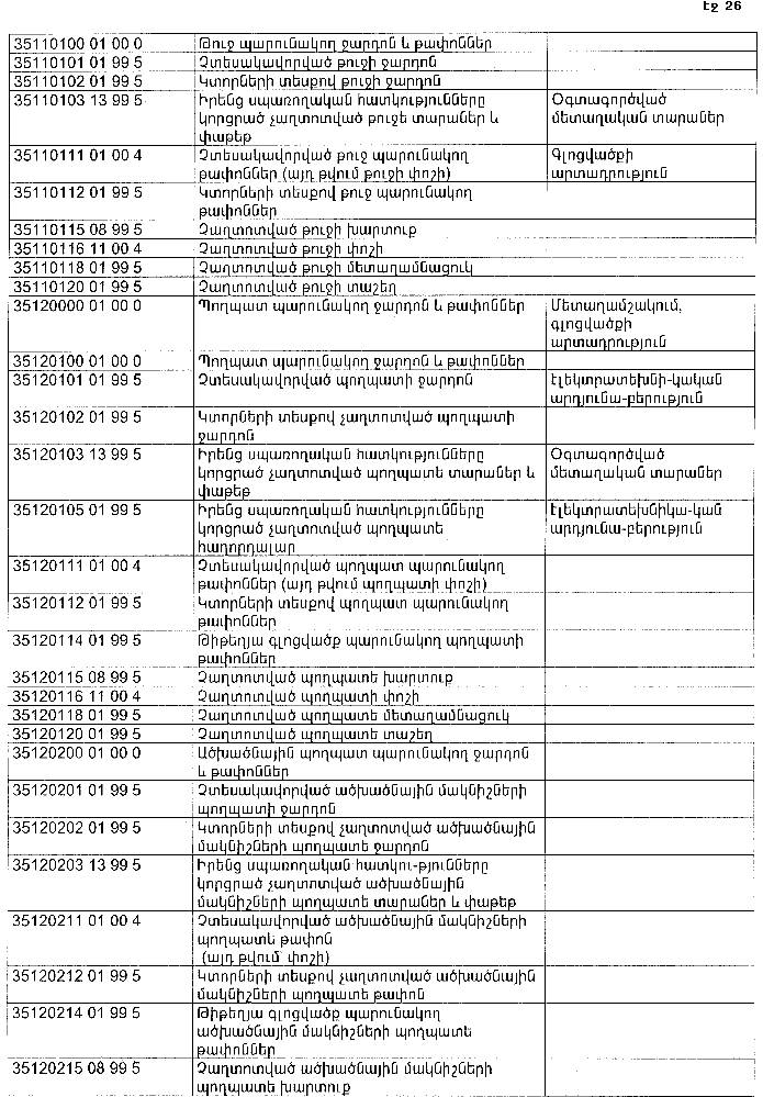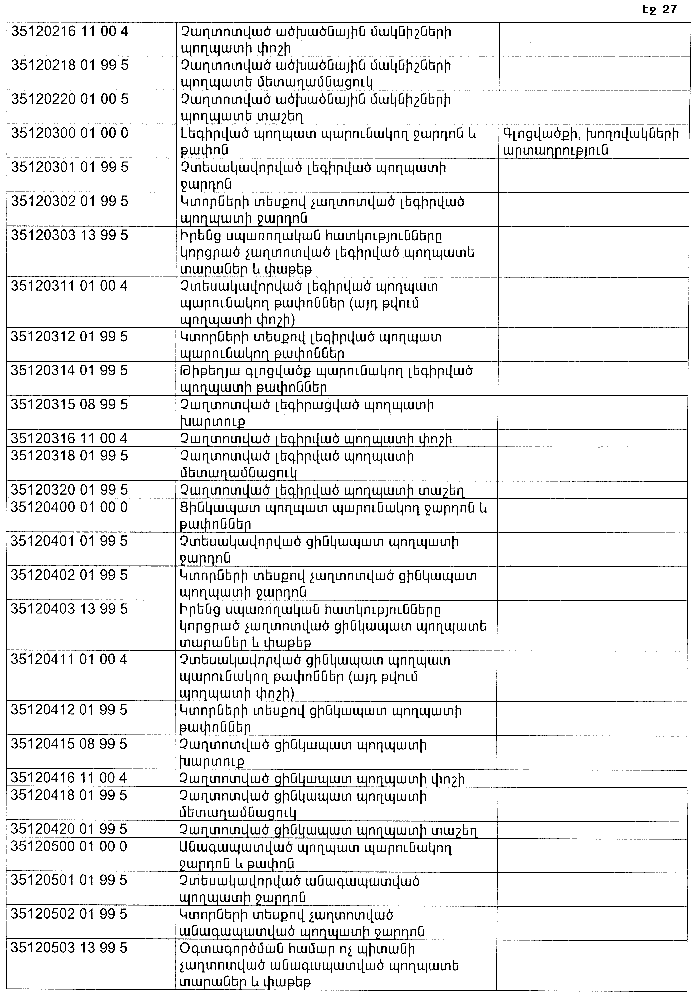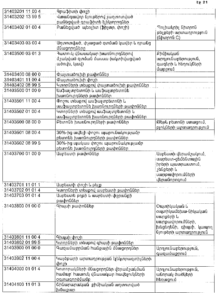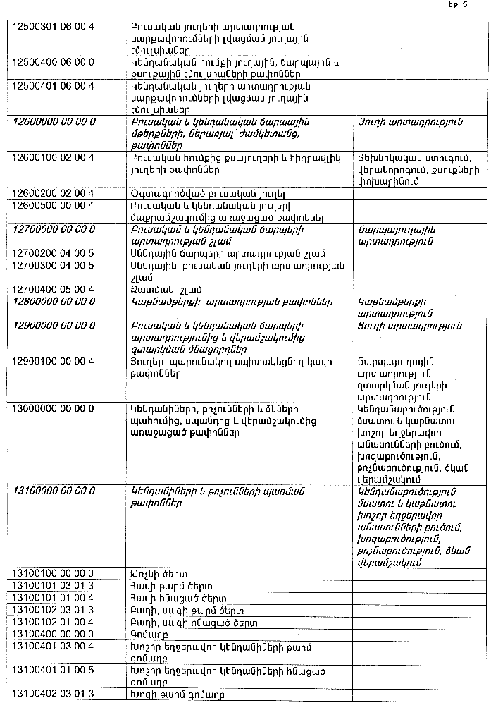 ՀԱՅԱՍՏԱՆԻ ՀԱՆՐԱՊԵՏՈՒԹՅԱՆ ՏԱՐԱԾՔՈՒՄ ԳՈՅԱՑՈՂ ԱՐՏԱԴՐՈՒԹՅԱՆ (ԱՅԴ ԹՎՈՒՄ` ԸՆԴԵՐՔՕԳՏԱԳՈՐԾՄԱՆ) ԵՎ ՍՊԱՌՄԱՆ ԹԱՓՈՆՆԵՐԻ ՑԱՆԿԸ ՀԱՍՏԱՏԵԼՈՒ ՄԱՍԻՆ