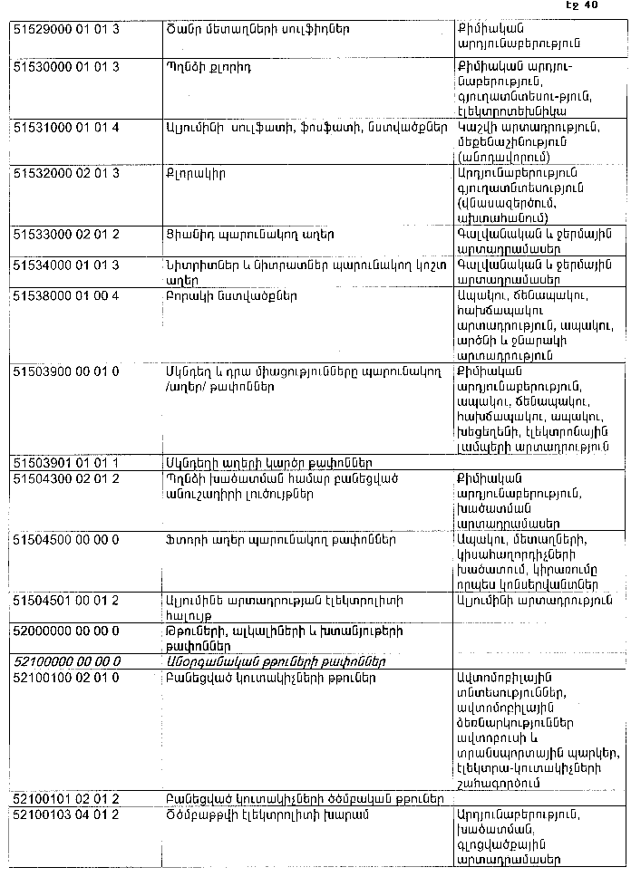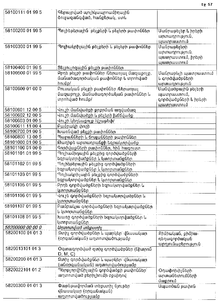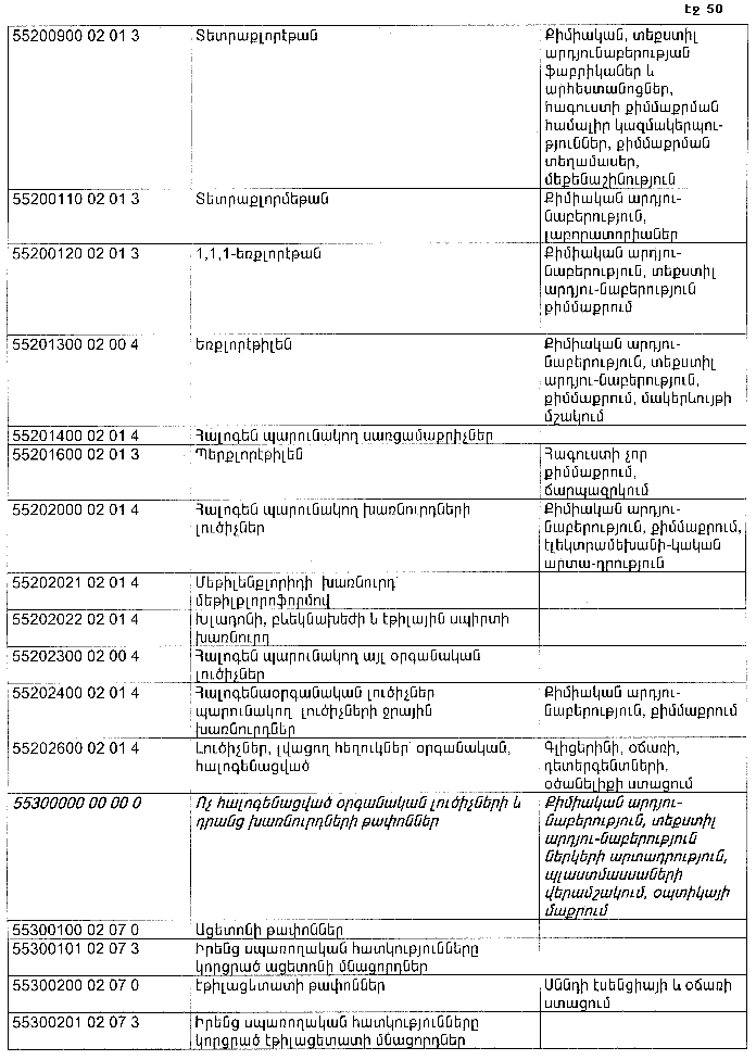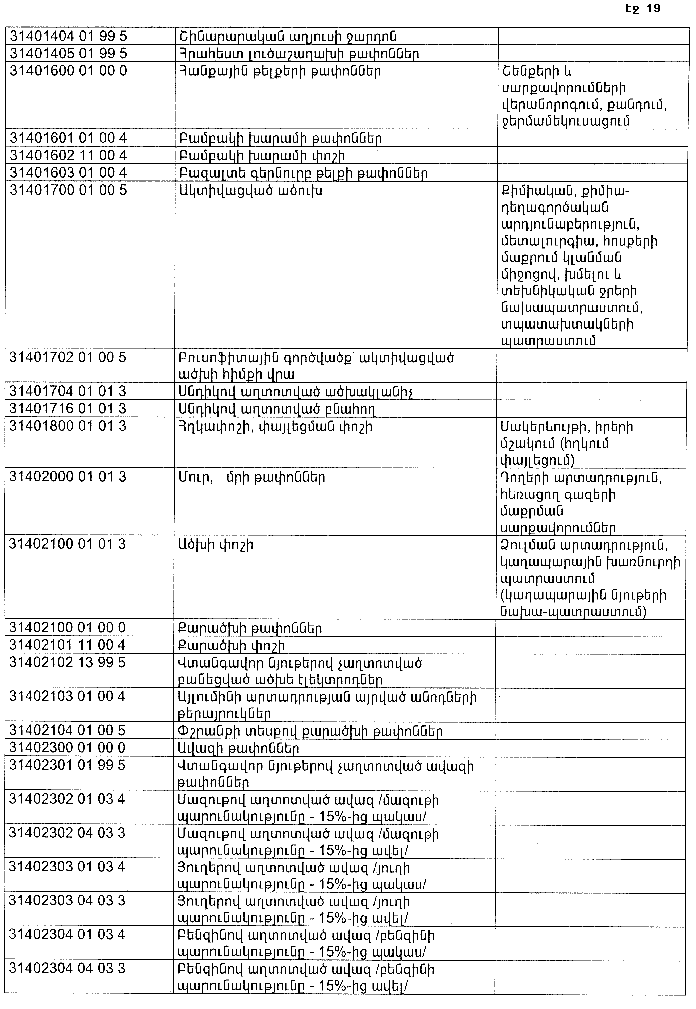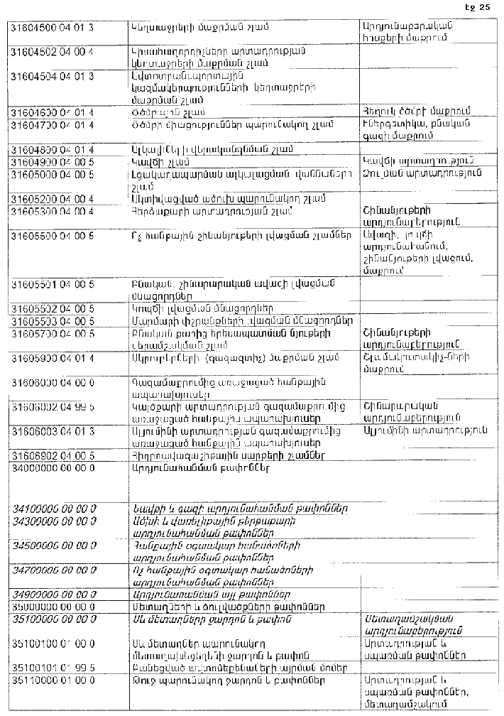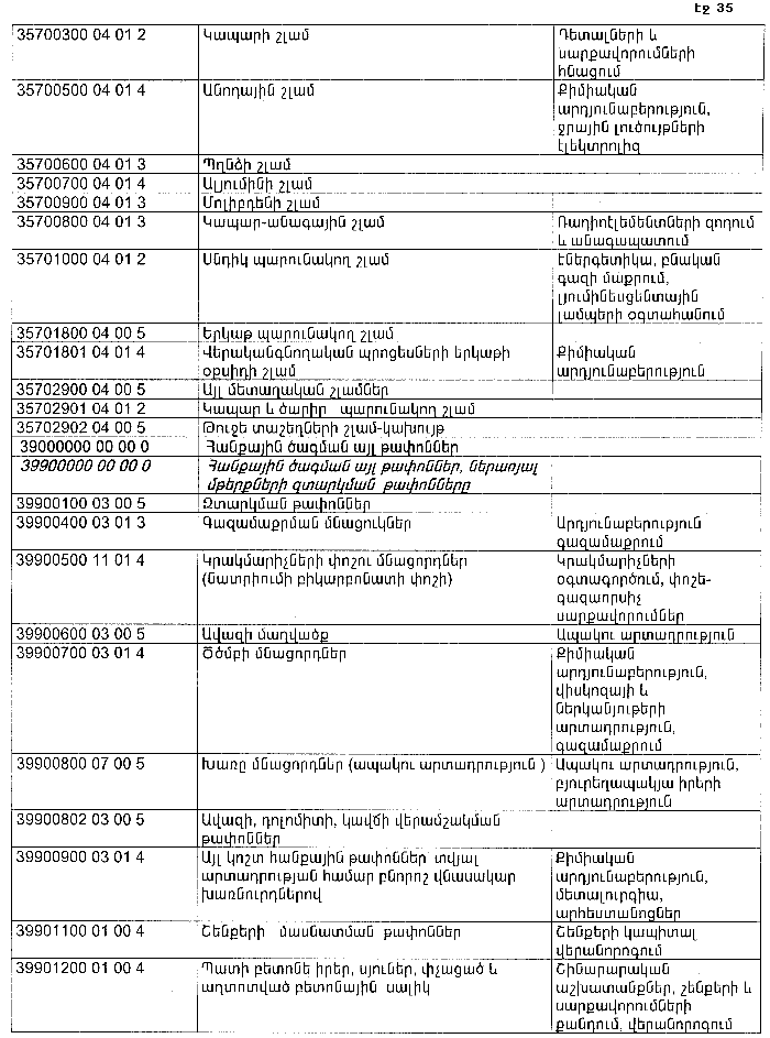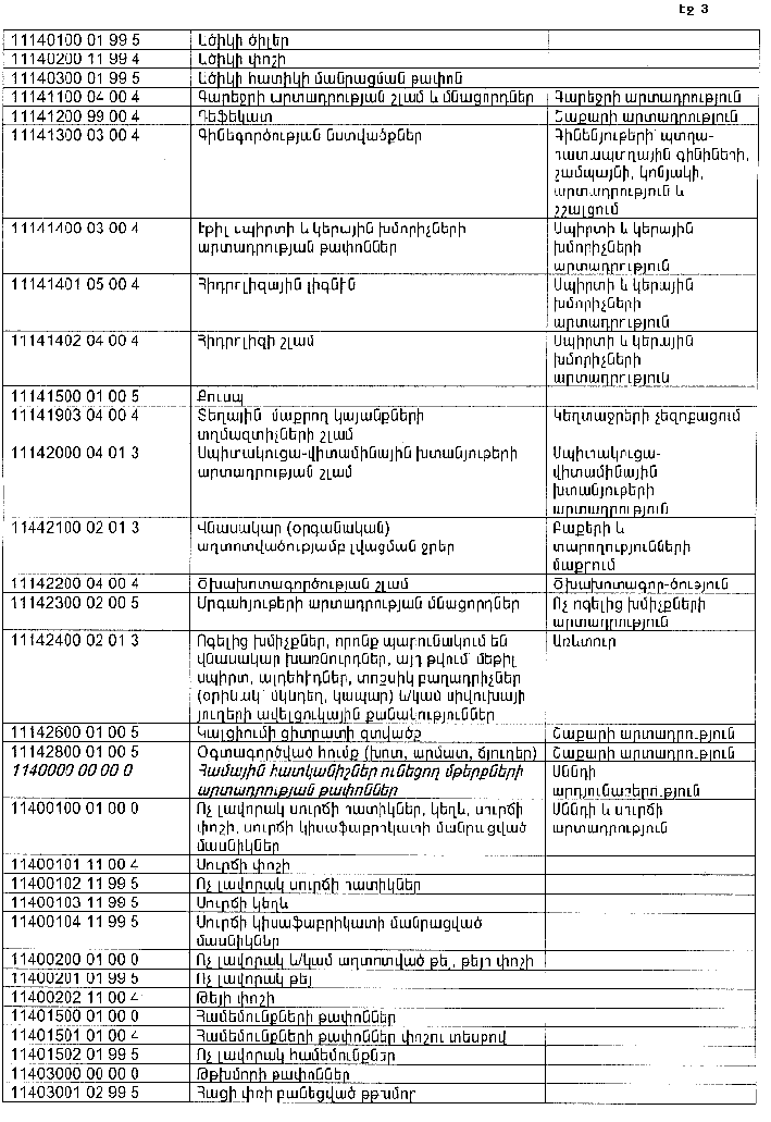 ՀԱՅԱՍՏԱՆԻ ՀԱՆՐԱՊԵՏՈՒԹՅԱՆ ՏԱՐԱԾՔՈՒՄ ԳՈՅԱՑՈՂ ԱՐՏԱԴՐՈՒԹՅԱՆ (ԱՅԴ ԹՎՈՒՄ` ԸՆԴԵՐՔՕԳՏԱԳՈՐԾՄԱՆ) ԵՎ ՍՊԱՌՄԱՆ ԹԱՓՈՆՆԵՐԻ ՑԱՆԿԸ ՀԱՍՏԱՏԵԼՈՒ ՄԱՍԻՆ