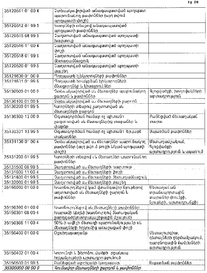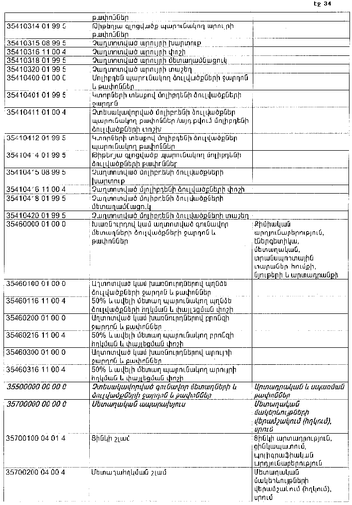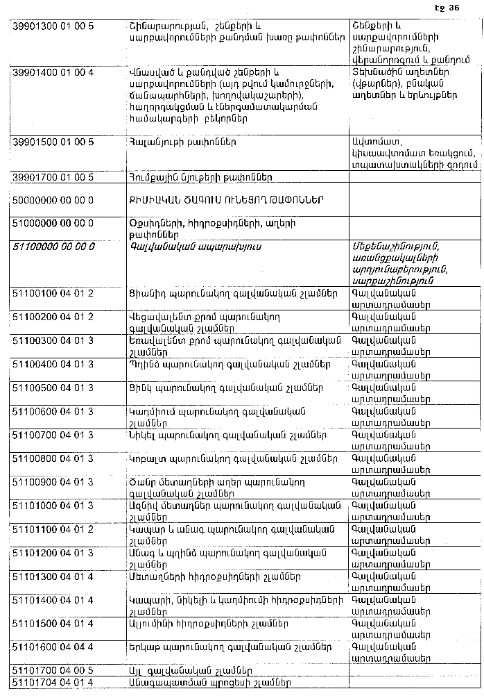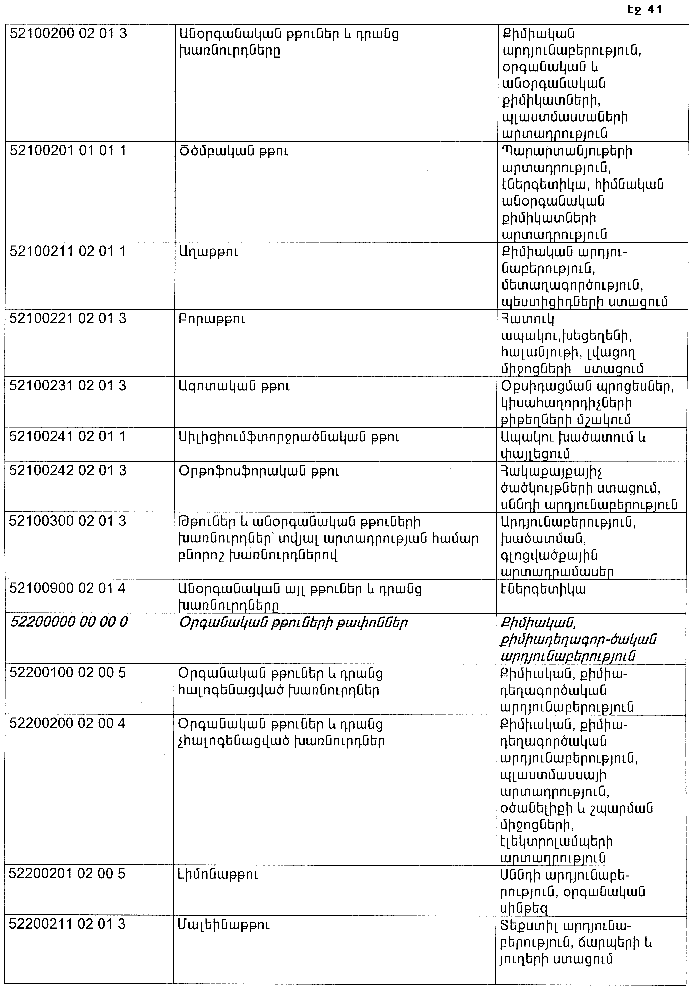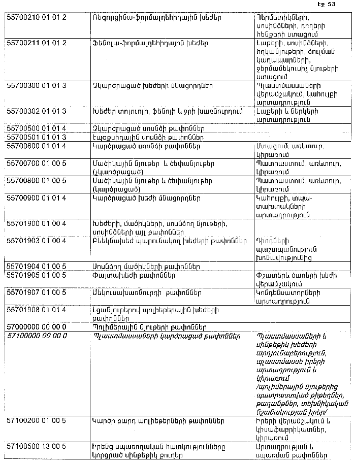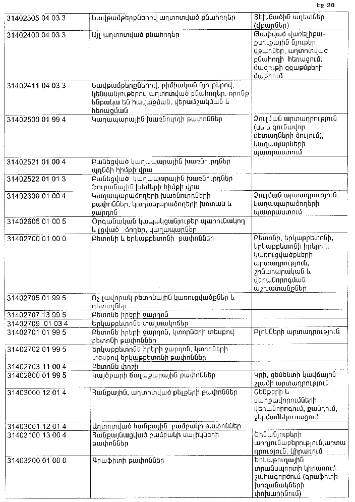 ՀԱՅԱՍՏԱՆԻ ՀԱՆՐԱՊԵՏՈՒԹՅԱՆ ՏԱՐԱԾՔՈՒՄ ԳՈՅԱՑՈՂ ԱՐՏԱԴՐՈՒԹՅԱՆ (ԱՅԴ ԹՎՈՒՄ` ԸՆԴԵՐՔՕԳՏԱԳՈՐԾՄԱՆ) ԵՎ ՍՊԱՌՄԱՆ ԹԱՓՈՆՆԵՐԻ ՑԱՆԿԸ ՀԱՍՏԱՏԵԼՈՒ ՄԱՍԻՆ