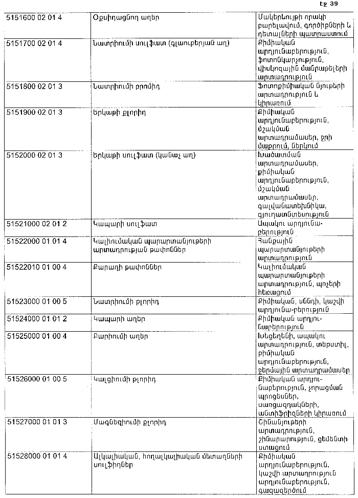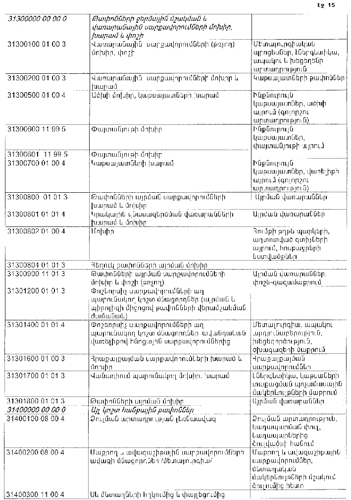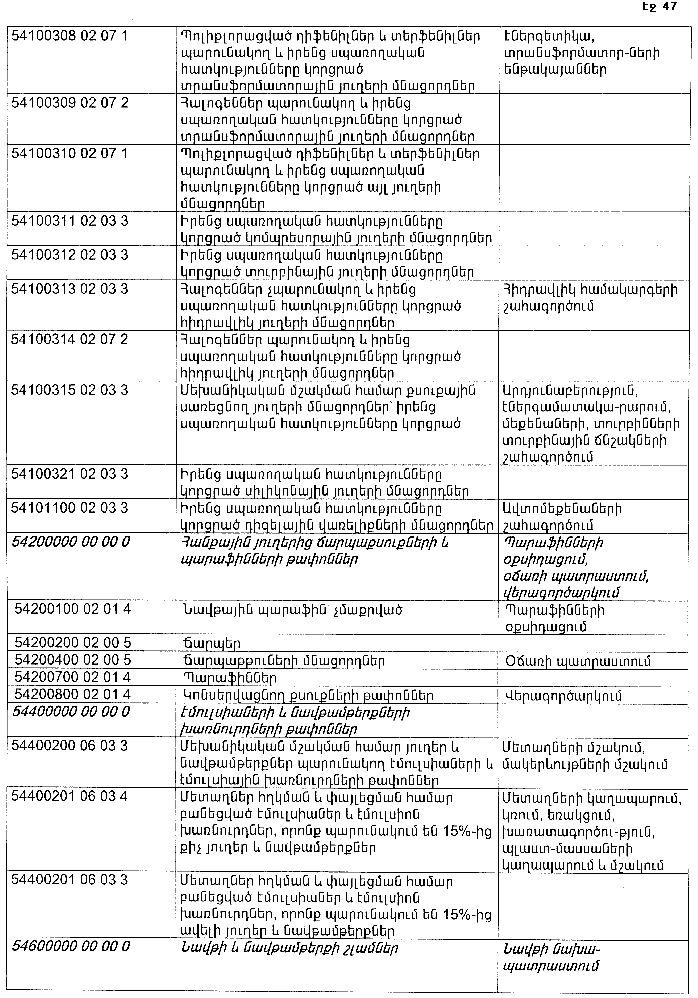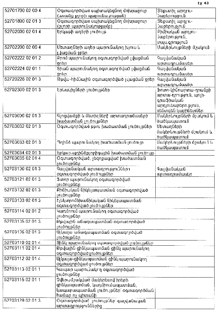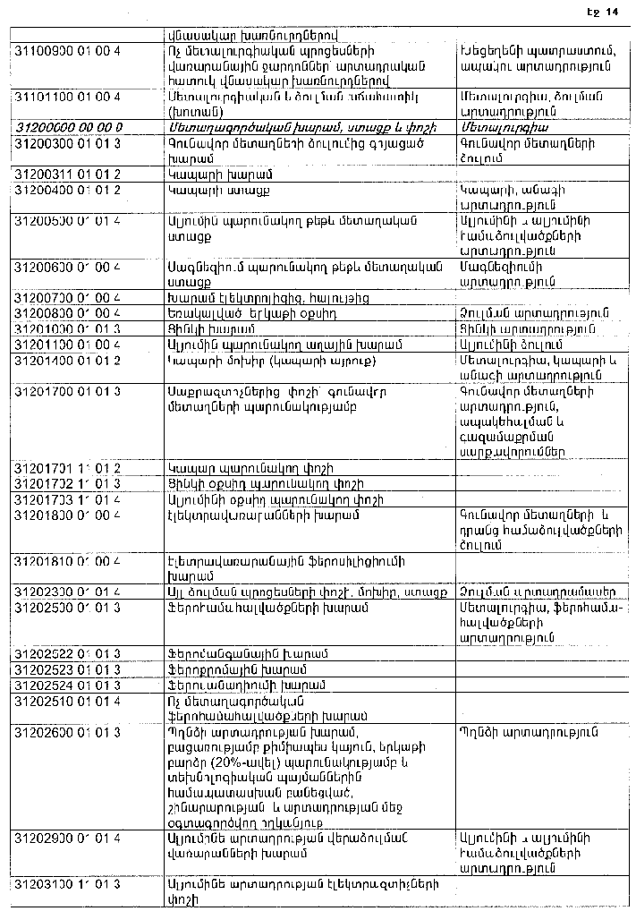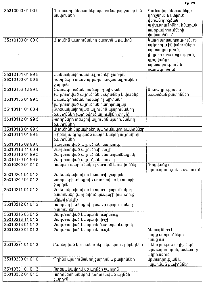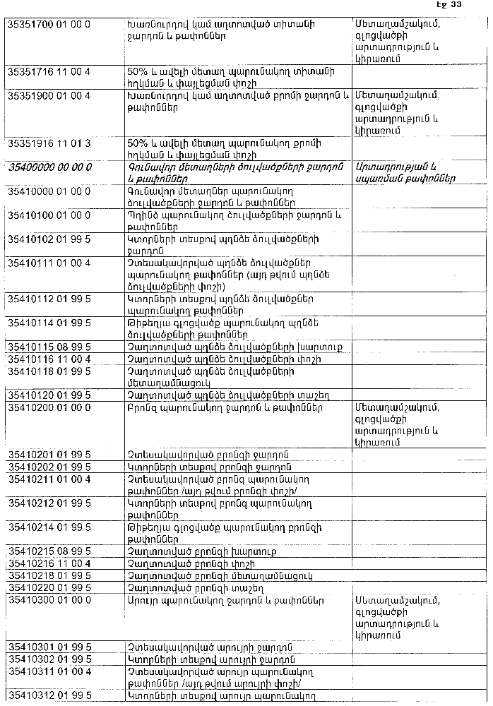 ՀԱՅԱՍՏԱՆԻ ՀԱՆՐԱՊԵՏՈՒԹՅԱՆ ՏԱՐԱԾՔՈՒՄ ԳՈՅԱՑՈՂ ԱՐՏԱԴՐՈՒԹՅԱՆ (ԱՅԴ ԹՎՈՒՄ` ԸՆԴԵՐՔՕԳՏԱԳՈՐԾՄԱՆ) ԵՎ ՍՊԱՌՄԱՆ ԹԱՓՈՆՆԵՐԻ ՑԱՆԿԸ ՀԱՍՏԱՏԵԼՈՒ ՄԱՍԻՆ