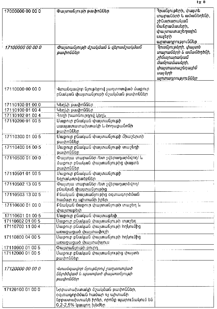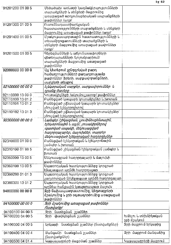 ՀԱՅԱՍՏԱՆԻ ՀԱՆՐԱՊԵՏՈՒԹՅԱՆ ՏԱՐԱԾՔՈՒՄ ԳՈՅԱՑՈՂ ԱՐՏԱԴՐՈՒԹՅԱՆ (ԱՅԴ ԹՎՈՒՄ` ԸՆԴԵՐՔՕԳՏԱԳՈՐԾՄԱՆ) ԵՎ ՍՊԱՌՄԱՆ ԹԱՓՈՆՆԵՐԻ(վերնագիրը փոփ. 20.08.15 N 244-Ն)