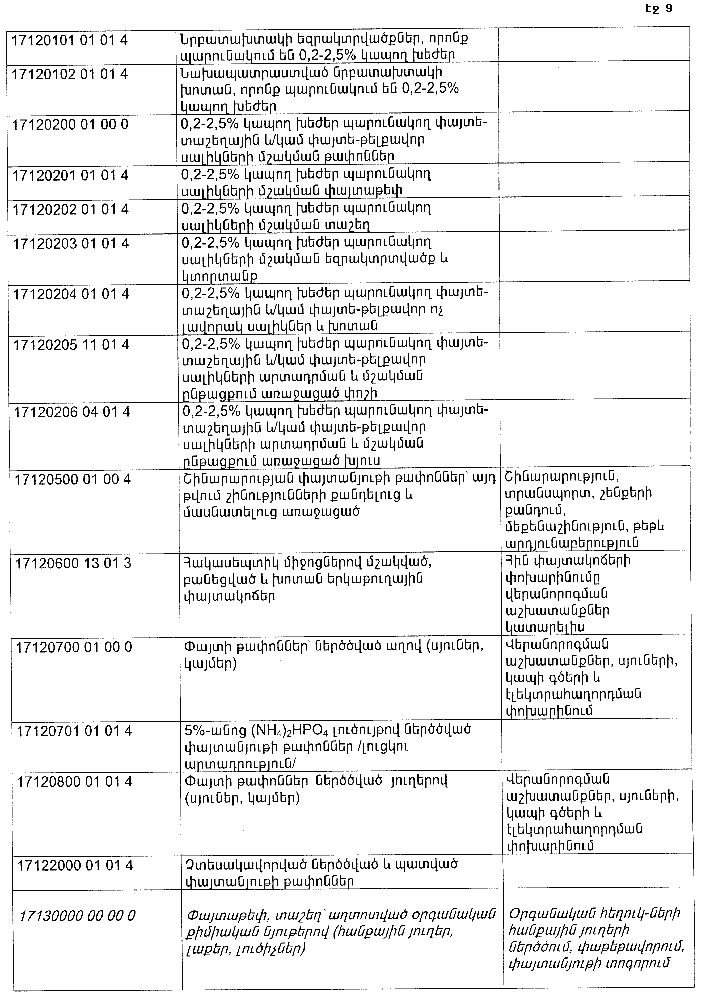 Ղեկավարվելով Հայաստանի Հանրապետության կառավարության 2004 թվականի մայիսի 20-ի «Հայաստանի Հանրապետության վտանգավոր թափոնների ցանկը հաստատելու մասին» N 874-Ն որոշման 2-րդ կետով.