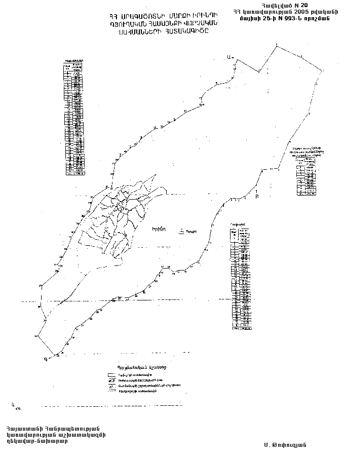 20) Իրինդի գյուղական համայնքի վարչական սահմանների նկարագիրը` համաձայն NN 20 և 201 հավելվածների,