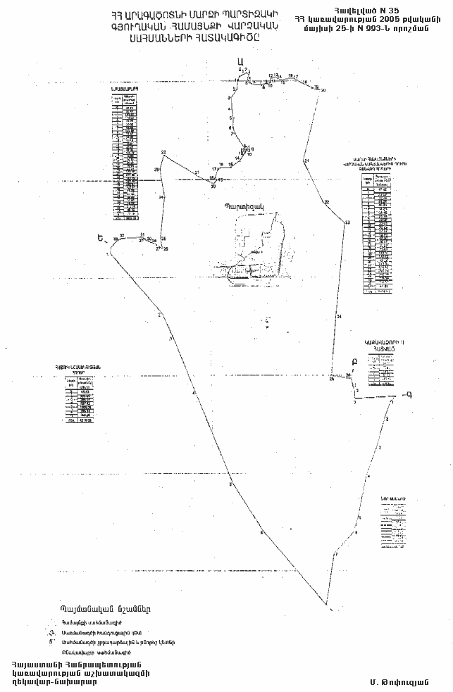 35) Պարտիզակի գյուղական համայնքի վարչական սահմանների նկարագիրը` համաձայն NN 35 և 351 հավելվածների,