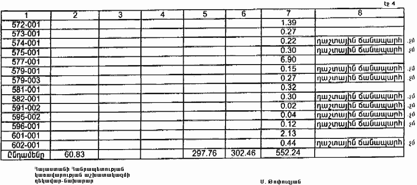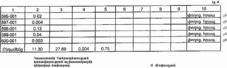 4. Ընդունել ի գիտություն Հայաստանի Հանրապետության Լոռու մարզի Քարաբերդի գյուղական համայնքի հողային ֆոնդի առկայության և բաշխման մասին հաշվետվությունը՝ 2005 թվականի հունվարի 1-ի դրությամբ՝ համաձայն N 8 հավելվածի: