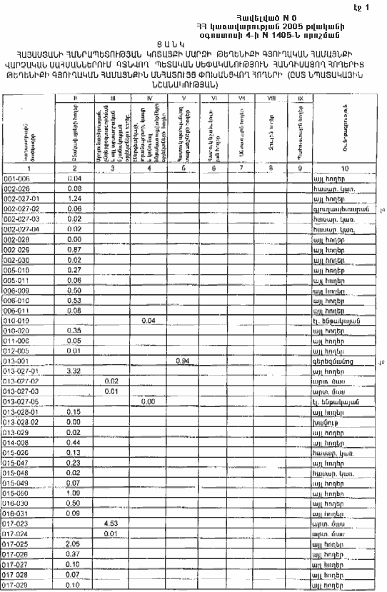 4 օգոստոսի 2005 թվականի N 1405-Ն