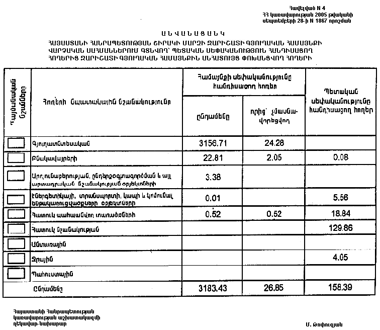 ՀԱՅԱՍՏԱՆԻ ՀԱՆՐԱՊԵՏՈՒԹՅԱՆ ՇԻՐԱԿԻ ՄԱՐԶԻ ԶԱՐԻՇԱՏԻ ԳՅՈՒՂԱԿԱՆ ՀԱՄԱՅՆՔԻ ՎԱՐՉԱԿԱՆ ՍԱՀՄԱՆՆԵՐՈՒՄ ԳՏՆՎՈՂ` ՊԵՏԱԿԱՆ ՍԵՓԱԿԱՆՈՒԹՅՈՒՆ ՀԱՆԴԻՍԱՑՈՂ ՀՈՂԵՐԻ (ԸՍՏ ՆՊԱՏԱԿԱՅԻՆ ՆՇԱՆԱԿՈՒԹՅԱՆ)