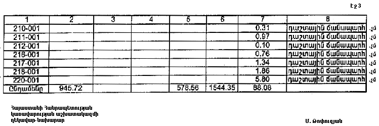 7. Հայաստանի Հանրապետության Շիրակի մարզպետին` Հայաստանի Հանրապետության կառավարության 2000 թվականի հոկտեմբերի 23-ի N 656 որոշմամբ սահմանված կարգով` սկզբնական հաշվառման տվյալների հիման վրա ապահովել մարզի տարածքում ընթացիկ հաշվառման աշխատանքների իրականացումը: