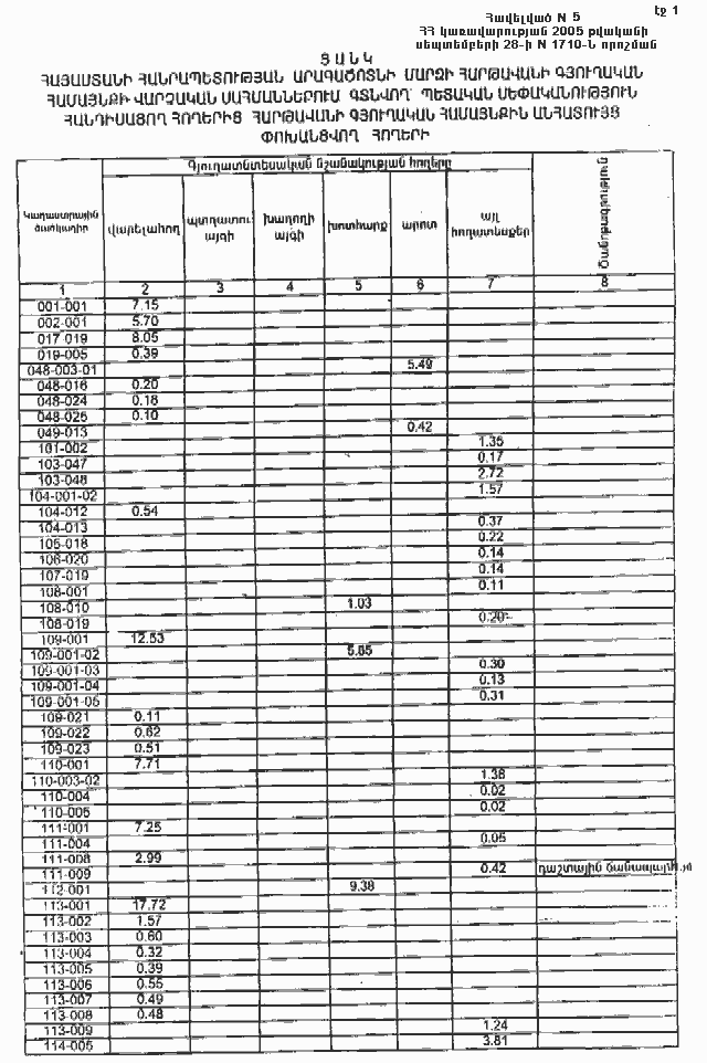 ՀԱՅԱՍՏԱՆԻ ՀԱՆՐԱՊԵՏՈՒԹՅԱՆ ԱՐԱԳԱԾՈՏՆԻ ՄԱՐԶԻ ՀԱՐԹԱՎԱՆԻ ԳՅՈՒՂԱԿԱՆ ՀԱՄԱՅՆՔԻ ՎԱՐՉԱԿԱՆ ՍԱՀՄԱՆՆԵՐՈՒՄ ԳՏՆՎՈՂ` ՊԵՏԱԿԱՆ ՍԵՓԱԿԱՆՈՒԹՅՈՒՆ ՀԱՆԴԻՍԱՑՈՂ ՀՈՂԵՐԻՑ ՀԱՐԹԱՎԱՆԻ ԳՅՈՒՂԱԿԱՆ ՀԱՄԱՅՆՔԻՆ ԱՆՀԱՏՈՒՅՑ ՓՈԽԱՆՑՎՈՂ ՀՈՂԵՐԻ (ԸՍՏ ՆՊԱՏԱԿԱՅԻՆ ՆՇԱՆԱԿՈՒԹՅԱՆ)