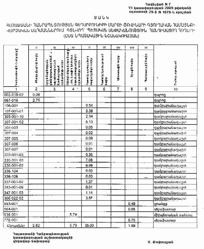 ՀԱՅԱՍՏԱՆԻ ՀԱՆՐԱՊԵՏՈՒԹՅԱՆ ԳԵՂԱՐՔՈՒՆԻՔԻ ՄԱՐԶԻ ԾՈՎԻՆԱՐԻ ԳՅՈՒՂԱԿԱՆ ՀԱՄԱՅՆՔԻ ՎԱՐՉԱԿԱՆ ՍԱՀՄԱՆՆԵՐՈՒՄ ԳՏՆՎՈՂ` ՊԵՏԱԿԱՆ ՍԵՓԱԿԱՆՈՒԹՅՈՒՆ ՀԱՆԴԻՍԱՑՈՂ ՀՈՂԵՐԻՑ ԾՈՎԻՆԱՐԻ ԳՅՈՒՂԱԿԱՆ ՀԱՄԱՅՆՔԻՆ ԱՆՀԱՏՈՒՅՑ ՓՈԽԱՆՑՎՈՂ ՀՈՂԵՐԻ (ԸՍՏ ՆՊԱՏԱԿԱՅԻՆ ՆՇԱՆԱԿՈՒԹՅԱՆ)