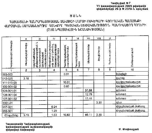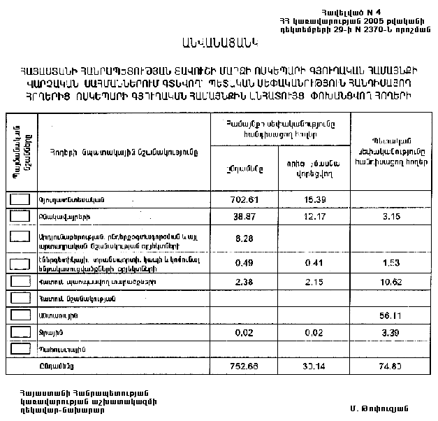 29 դեկտեմբերի 2005 թվականի N 2370-Ն