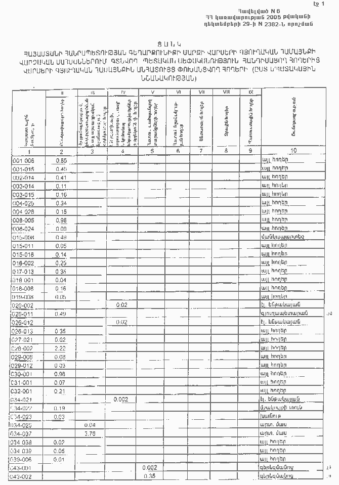 29 դեկտեմբերի 2005 թվականի N 2382-Ն