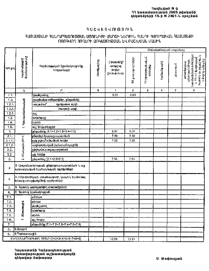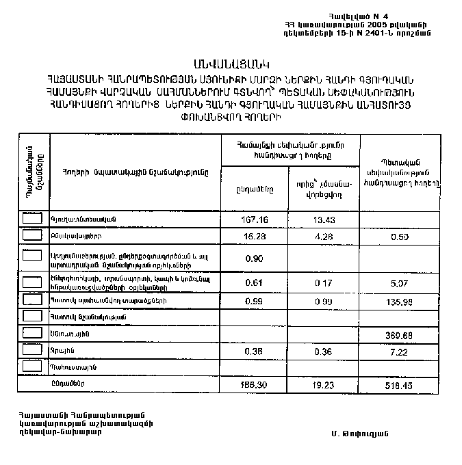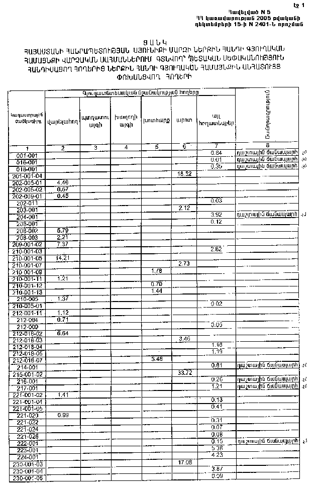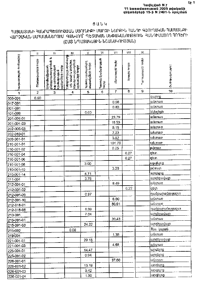 15 դեկտեմբերի 2005 թվականի N 2401-Ն