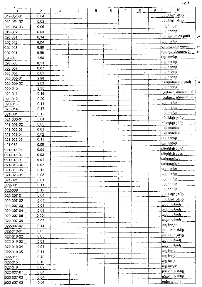 4. Ընդունել ի գիտություն Հայաստանի Հանրապետության Կոտայքի մարզի Զովունու գյուղական համայնքի հողային ֆոնդի առկայության և բաշխման մասին հաշվետվությունը` 2005 թվականի հունվարի 1-ի դրությամբ` համաձայն NN 8 և 9 հավելվածների: