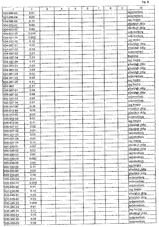 6. Թույլատրել Հայաստանի Հանրապետության կառավարությանն առընթեր անշարժ գույքի կադաստրի պետական կոմիտեի նախագահին Հայաստանի Հանրապետության պետական գեոդեզիական ցանցի հավասարակշռման արդյունքների հիման վրա Հայաստանի Հանրապետության վարչատարածքային միավորների սահմանանիշերի կոորդինատների ժողովածուի հրատարակումից հետո հողային ֆոնդի ընթացիկ հաշվառման ժամանակ Հայաստանի Հանրապետության Կոտայքի մարզի Զովունու գյուղական համայնքի հողային հաշվեկշռում սահմանված կարգով կատարել համապատասխան փոփոխություններ: