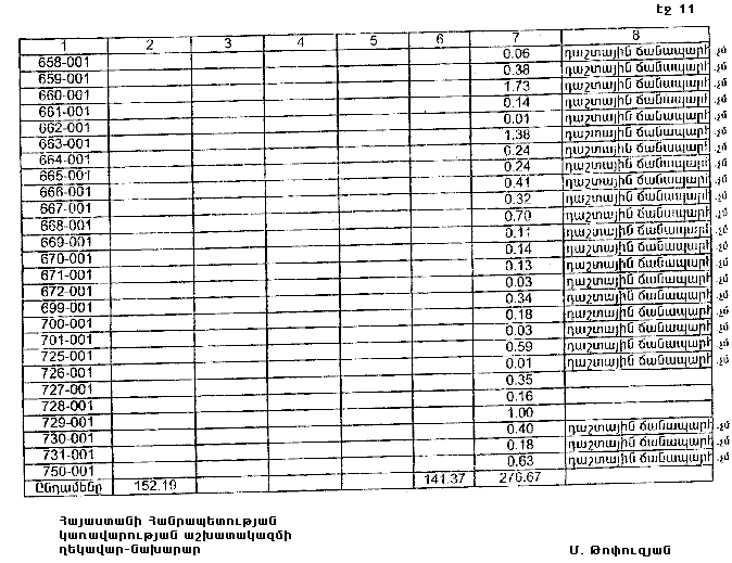 6. Թույլատրել Հայաստանի Հանրապետության կառավարությանն առընթեր անշարժ գույքի կադաստրի պետական կոմիտեի նախագահին Հայաստանի Հանրապետության պետական գեոդեզիական ցանցի հավասարակշռման արդյունքների հիման վրա Հայաստանի Հանրապետության վարչատարածքային միավորների սահմանանիշերի կոորդինատների ժողովածուի հրատարակումից հետո հողային ֆոնդի ընթացիկ հաշվառման ժամանակ Հայաստանի Հանրապետության Կոտայքի մարզի Զովունու գյուղական համայնքի հողային հաշվեկշռում սահմանված կարգով կատարել համապատասխան փոփոխություններ: