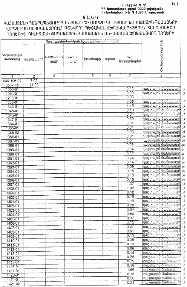 ՀԱՅԱՍՏԱՆԻ ՀԱՆՐԱՊԵՏՈՒԹՅԱՆ ՏԱՎՈՒՇԻ ՄԱՐԶԻ ԴԻԼԻՋԱՆԻ ՔԱՂԱՔԱՅԻՆ ՀԱՄԱՅՆՔԻ ՎԱՐՉԱԿԱՆ ՍԱՀՄԱՆՆԵՐՈՒՄ ԳՏՆՎՈՂ` ՊԵՏԱԿԱՆ ՍԵՓԱԿԱՆՈՒԹՅՈՒՆ ՀԱՆԴԻՍԱՑՈՂ ՀՈՂԵՐԻՑ ԴԻԼԻՋԱՆԻ ՔԱՂԱՔԱՅԻՆ ՀԱՄԱՅՆՔԻՆ ԱՆՀԱՏՈՒՅՑ ՓՈԽԱՆՑՎՈՂ ՀՈՂԵՐԻ