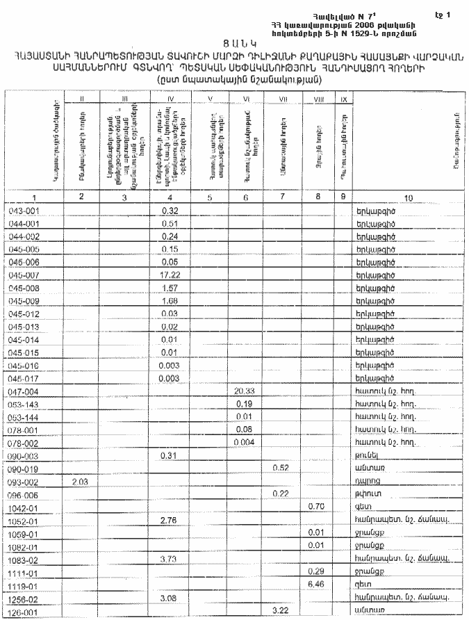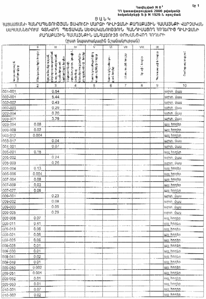 (Հավելվածը խմբ. 05.10.06 N 1529-Ն)