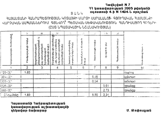 4 օգոստոսի 2005 թվականի N 1404-Ն