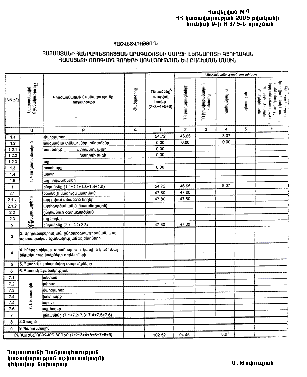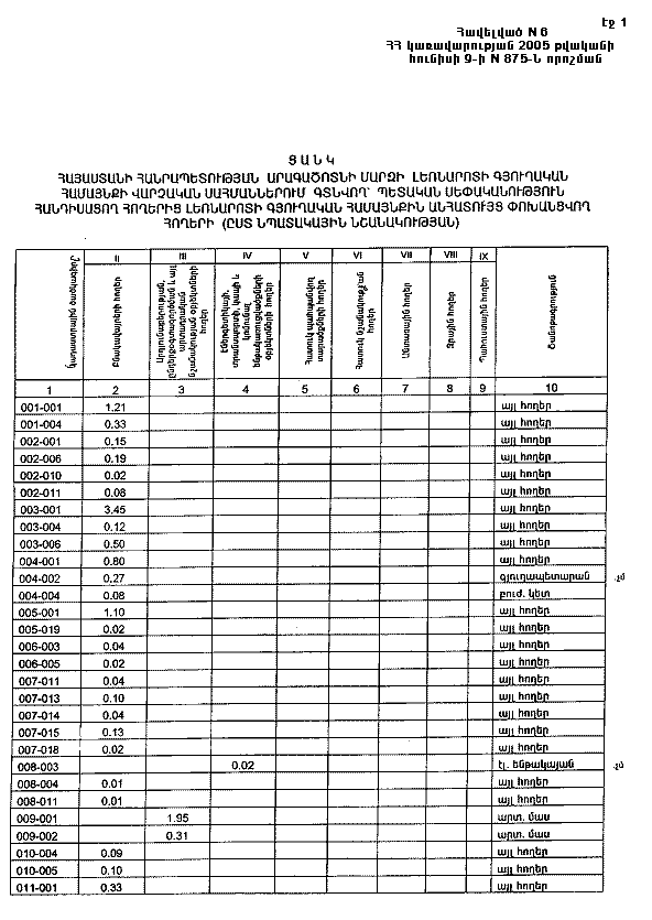 Հավելված N 7 ՀՀ կառավարության 2005 թվականի հունիսի 9-ի N 875-Ն որոշման |