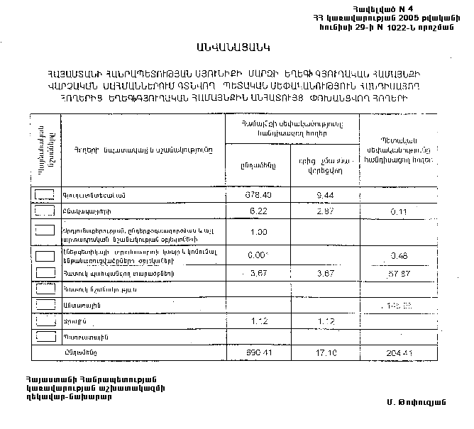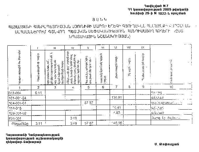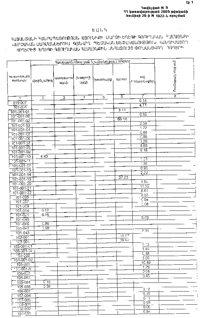29 հունիսի 2005 թվականի N 1022-Ն
