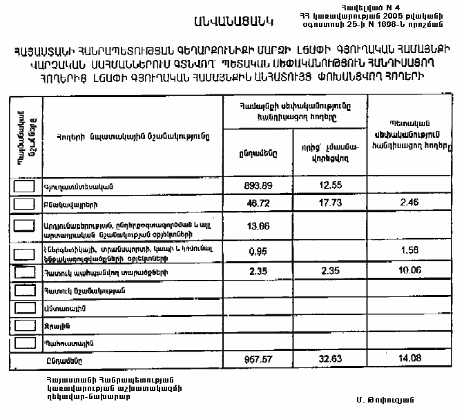 ա) Հայաստանի Հանրապետության Գեղարքունիքի մարզի Լճափի գյուղական համայնքին անհատույց սեփականության իրավունքով փոխանցվող 957.57 հեկտար հողերից 32.63 հեկտարը մասնավորեցման ենթակա չէ.
