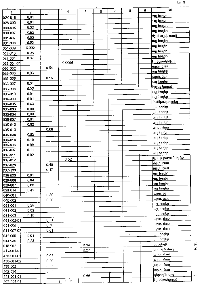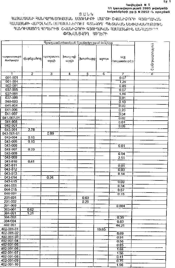 Հայաստանի Հանրապետության հողային օրենսգրքի 34-րդ ու 56-րդ, «Տեղական ինքնակառավարման մասին» Հայաստանի Հանրապետության օրենքի 6-րդ, 47-րդ ու 84-րդ և «Հայաստանի Հանրապետության վարչատարածքային բաժանման մասին» Հայաստանի Հանրապետության օրենքի 6-րդ հոդվածների պահանջներին համապատասխան` Հայաստանի Հանրապետության կառավարությունը որոշում է. 1. (կետն ուժը կորցրել է 14.10.10 N 1359-Ն) 2. Հայաստանի Հանրապետության Սյունիքի մարզի Շվանիձորի գյուղական համայնքի վարչական սահմաններում գտնվող՝ պետական սեփականություն հանդիսացող 3986.45 հեկտար հողամասերից 2405.56 հեկտարը, որից՝ գյուղատնտեսական նշանակության 2368.25 հեկտար, բնակավայրերի հողերի՝ 22.03 հեկտար, արդյունաբերության, ընդերքօգտագործման և այլ արտադրական նշանակության օբյեկտների՝ 3.23 հեկտար, էներգետիկայի, տրանսպորտի, կապի և կոմունալ ենթակառուցվածքների օբյեկտների՝ 0.11 հեկտար, հատուկ պահպանվող տարածքների 0.96 հեկտար, ջրային հողերի` 10.98 հեկտար անհատույց սեփականության իրավունքով փոխանցել Շվանիձորի գյուղական համայնքին՝ համաձայն NN 3, 4, 5 և 6 հավելվածների: 3. Սահմանել, որ Հայաստանի Հանրապետության հողային օրենսգրքի 60-րդ հոդվածի պահանջներին համապատասխան` ա) Հայաստանի Հանրապետության Սյունիքի մարզի Շվանիձորի գյուղական համայնքին անհատույց սեփականության իրավունքով փոխանցվող 2405.56 հեկտար հողերից 63.52 հեկտարը մասնավորեցման ենթակա չէ. բ) Հայաստանի Հանրապետության Սյունիքի մարզի Շվանիձորի գյուղական համայնքի վարչական սահմաններում գտնվող հողերից 1580.89 հեկտարը համարվում է պետական սեփականություն` համաձայն N 7 հավելվածի: 4. Ընդունել ի գիտություն Հայաստանի Հանրապետության Սյունիքի մարզի Շվանիձորի գյուղական համայնքի հողային ֆոնդի առկայության և բաշխման մասին հաշվետվությունը` 2005 թվականի հունվարի 1-ի դրությամբ` համաձայն NN 8 և 9 հավելվածների: 5. Հայաստանի Հանրապետության կառավարությանն առընթեր անշարժ գույքի կադաստրի պետական կոմիտեի նախագահին` սահմանված կարգով ապահովել սկզբնական հաշվառման նյութերի տրամադրումը Հայաստանի Հանրապետության Սյունիքի մարզի Շվանիձորի գյուղական համայնքի ղեկավարին` հողերի ընթացիկ հաշվառումն անցկացնելու և համայնքի հողային հաշվեկշիռը կազմելու համար: 6. Թույլատրել Հայաստանի Հանրապետության կառավարությանն առընթեր անշարժ գույքի կադաստրի պետական կոմիտեի նախագահին Հայաստանի Հանրապետության պետական գեոդեզիական ցանցի հավասարակշռման արդյունքների հիման վրա Հայաստանի Հանրապետության վարչատարածքային միավորների սահմանանիշերի կոորդինատների ժողովածուի հրատարակումից հետո հողային ֆոնդի ընթացիկ հաշվառման ժամանակ Հայաստանի Հանրապետության Սյունիքի մարզի Շվանիձորի գյուղական համայնքի հողային հաշվեկշռում սահմանված կարգով կատարել համապատասխան փոփոխություններ: 7. Հայաստանի Հանրապետության Սյունիքի մարզպետին` Հայաստանի Հանրապետության կառավարության 2000 թվականի հոկտեմբերի 23-ի N 656 որոշմամբ սահմանված կարգով` սկզբնական հաշվառման տվյալների հիման վրա ապահովել մարզի տարածքում ընթացիկ հաշվառման աշխատանքների իրականացումը: 8. Սույն որոշումն ուժի մեջ է մտնում պաշտոնական հրապարակմանը հաջորդող օրվանից։ |