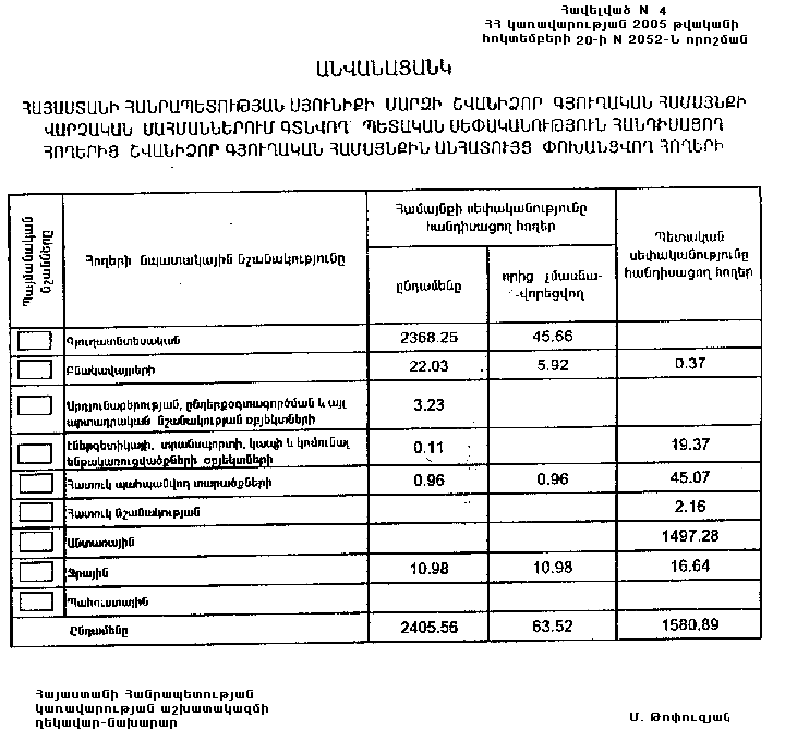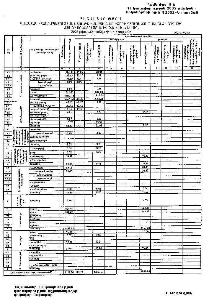 20 հոկտեմբերի 2005 թվականի N 2052-Ն