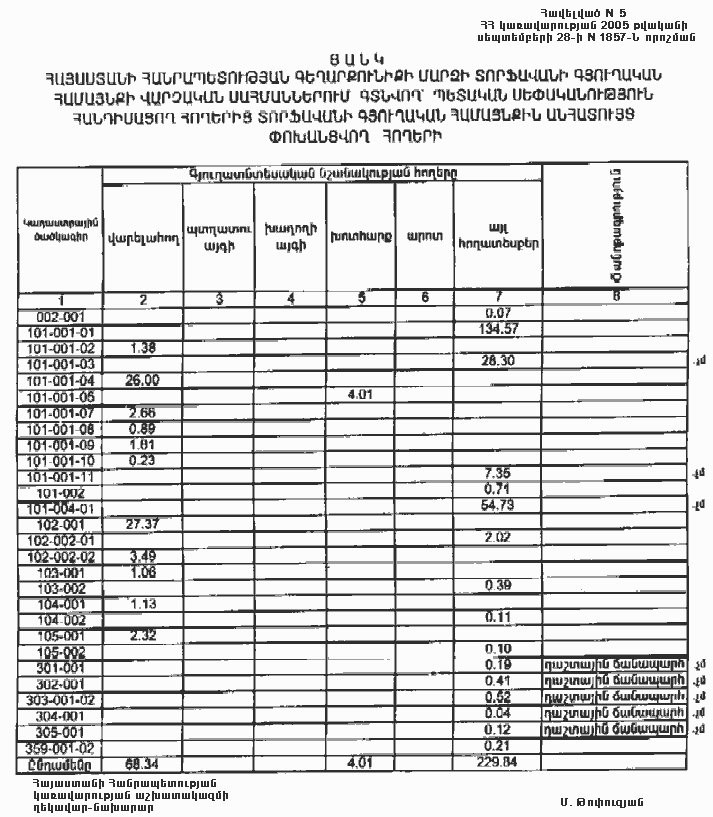 28 սեպտեմբերի 2005 թվականի N 1857-Ն