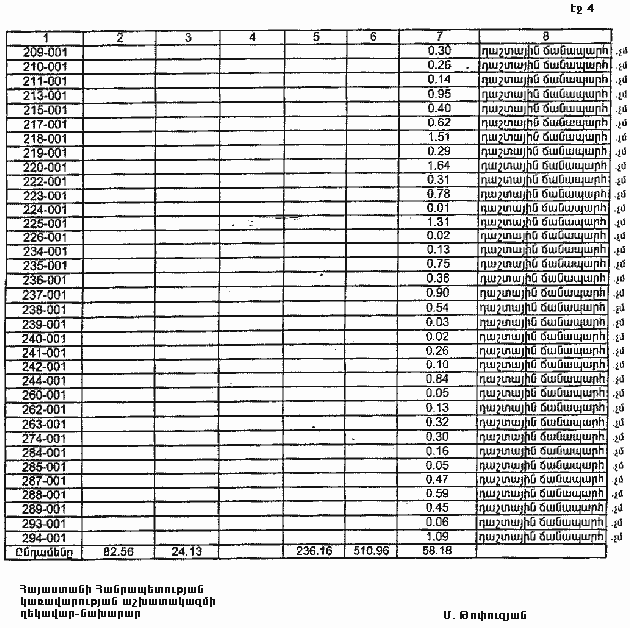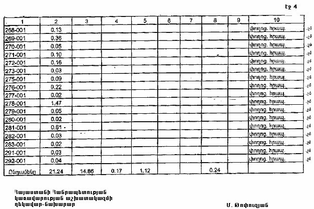 4. Ընդունել ի գիտություն Հայաստանի Հանրապետության Լոռու մարզի Պուշկինոյի գյուղական համայնքի հողային ֆոնդի առկայության և բաշխման մասին հաշվետվությունը` 2005 թվականի հունվարի 1-ի դրությամբ` համաձայն NN 8 և 9 հավելվածների: