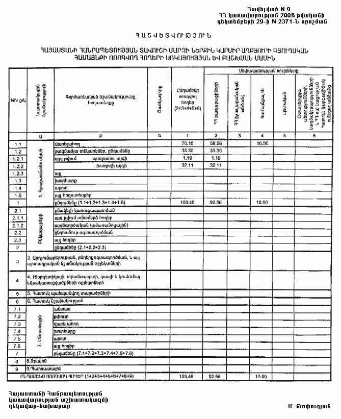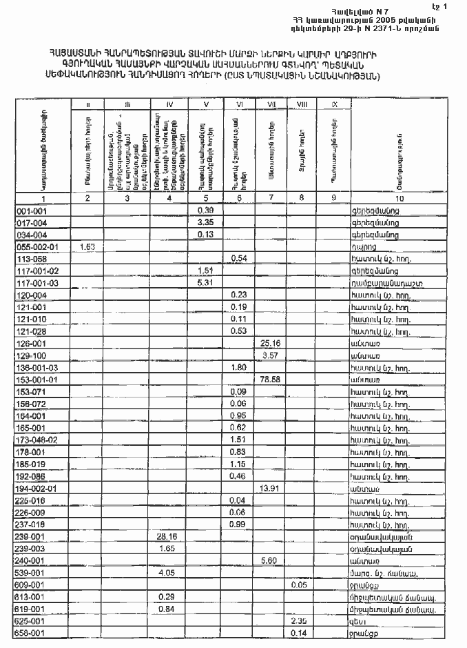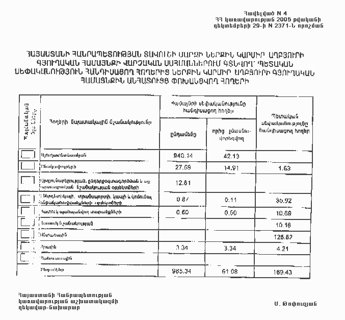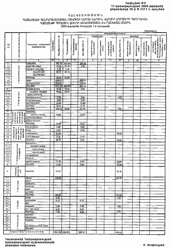 29 դեկտեմբերի 2005 թվականի N 2371-Ն