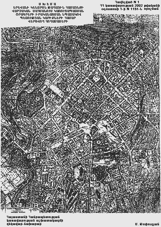ԵՐԵՎԱՆԻ ԿԵՆՏՐՈՆ ԹԱՂԱՅԻՆ ՀԱՄԱՅՆՔԻ ՎԱՐՉԱԿԱՆ ՍԱՀՄԱՆՈՒՄ ԿԱՌՈՒՑԱՊԱՏՄԱՆ ԾՐԱԳՐԵՐԻ ԻՐԱԿԱՆԱՑՄԱՆ ՆՊԱՏԱԿՈՎ ՊԵՏՈՒԹՅԱՆ ԿԱՐԻՔՆԵՐԻ ՀԱՄԱՐ ՎԵՐՑՎՈՂ ՀՈՂԱՄԱՍԵՐԻ