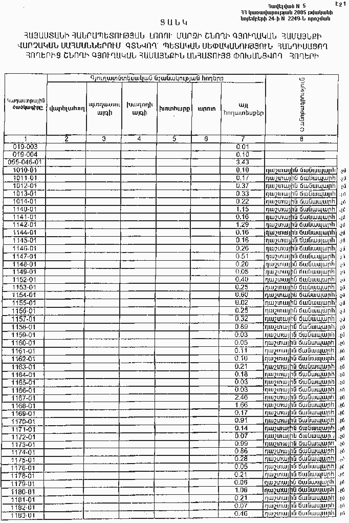 24 նոյեմբերի 2005 թվականի N 2249-Ն