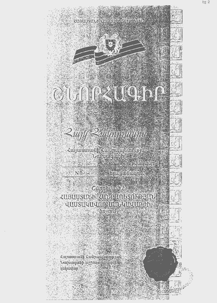 Հայաստանի Հանրապետության պատվավոր կոչմանն արժանացած անձանց պատվավոր կոչումները հավաստող շնորհագրերի ձևերը` համաձայն N 1 հավելվածի.