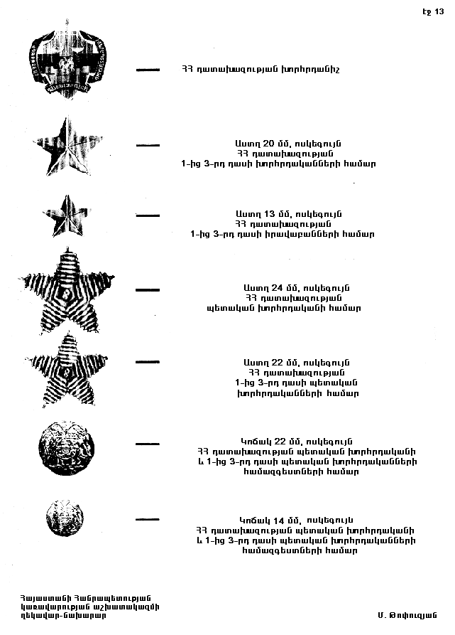 ՀԱՅԱՍՏԱՆԻ ՀԱՆՐԱՊԵՏՈՒԹՅԱՆ ԴԱՏԱԽԱԶՈՒԹՅԱՆ ԱՇԽԱՏՈՂՆԵՐԻ ՀԱՄԱԶԳԵՍՏԻ, ԴԱՍԱՅԻՆ ԱՍՏԻՃԱՆՆԵՐԻ ՏԱՐԲԵՐԱՆՇԱՆՆԵՐԻ ՆԿԱՐԱԳԻՐԸ ԵՎ ՆՄՈՒՇՆԵՐԸ, ԴՐԱՆՔ ՀԱՏԿԱՑՆԵԼՈՒ ԿԱՐԳԸ ՀԱՍՏԱՏԵԼՈՒ ՄԱՍԻՆ