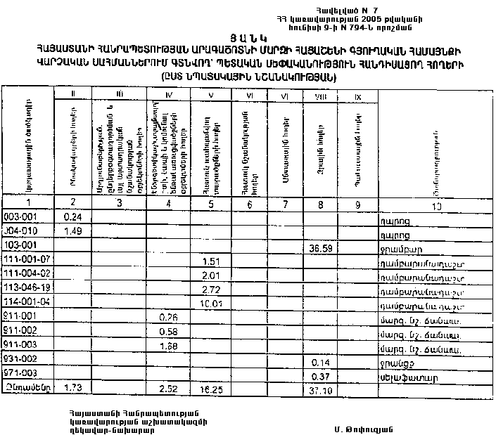9 հունիսի 2005 թվականի N 794-Ն
