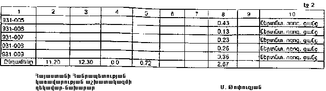 7. Հայաստանի Հանրապետության Արագածոտնի մարզպետին՝ Հայաստանի Հանրապետության կառավարության 2000 թվականի հոկտեմբերի 23-ի N 656 որոշմամբ սահմանված կարգով՝ սկզբնական հաշվառման տվյալների հիման վրա ապահովել մարզի տարածքում ընթացիկ հաշվառման աշխատանքների իրականացումը:
