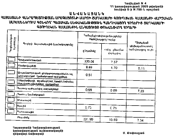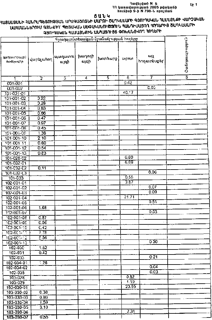 4. Ընդունել ի գիտություն Հայաստանի Հանրապետության Արագածոտնի մարզի Ծաղկասարի գյուղական համայնքի հողային ֆոնդի առկայության և բաշխման մասին հաշվետվությունը՝ 2005 թվականի հունվարի 1-ի դրությամբ՝ համաձայն N 8 հավելվածի: