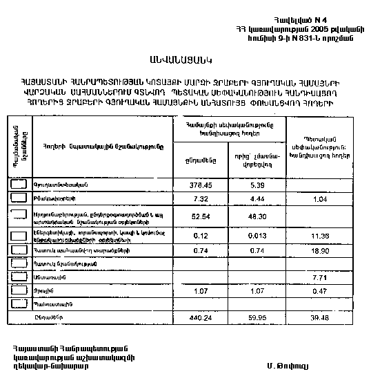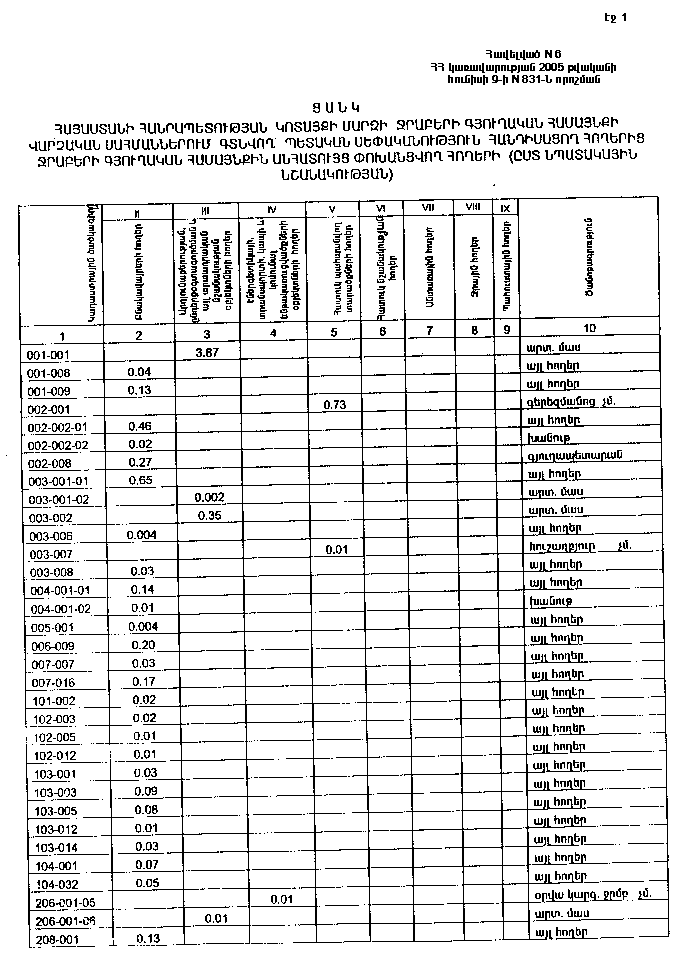 9 հունիսի 2005 թվականի N 831-Ն