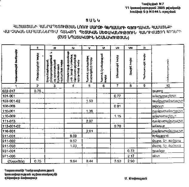 7. Հայաստանի Հանրապետության Լոռու մարզպետին` Հայաստանի Հանրապետության կառավարության 2000 թվականի հոկտեմբերի 23-ի N 656 որոշմամբ սահմանված կարգով` սկզբնական հաշվառման տվյալների հիման վրա ապահովել մարզի տարածքում ընթացիկ հաշվառման աշխատանքների իրականացումը:
