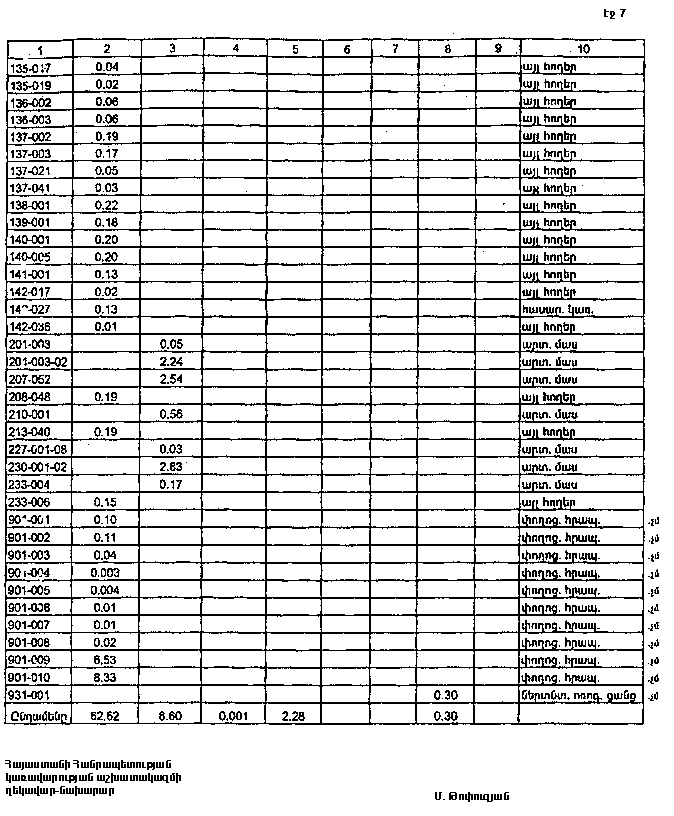 7. Հայաստանի Հանրապետության Լոռու մարզպետին` Հայաստանի Հանրապետության կառավարության 2000 թվականի հոկտեմբերի 23-ի N 656 որոշմամբ սահմանված կարգով` սկզբնական հաշվառման տվյալների հիման վրա ապահովել մարզի տարածքում ընթացիկ հաշվառման աշխատանքների իրականացումը: