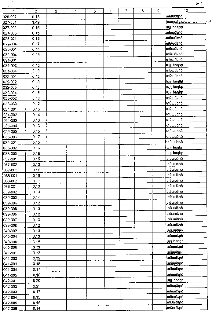 4. Ընդունել ի գիտություն Հայաստանի Հանրապետության Լոռու մարզի Սարամեջի գյուղական համայնքի հողային ֆոնդի առկայության և բաշխման մասին հաշվետվությունը` 2005 թվականի հունվարի 1-ի դրությամբ` համաձայն NN 8 և 9 հավելվածների: