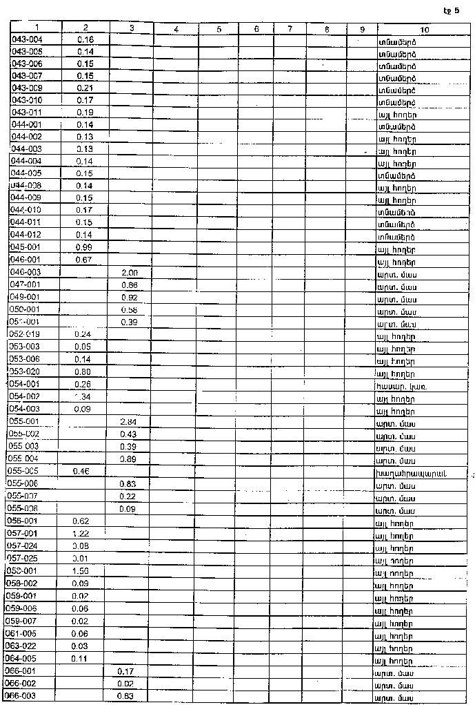 4. Ընդունել ի գիտություն Հայաստանի Հանրապետության Լոռու մարզի Սարամեջի գյուղական համայնքի հողային ֆոնդի առկայության և բաշխման մասին հաշվետվությունը` 2005 թվականի հունվարի 1-ի դրությամբ` համաձայն NN 8 և 9 հավելվածների: