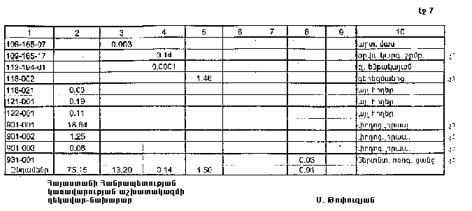 7. Հայաստանի Հանրապետության Լոռու մարզպետին` Հայաստանի Հանրապետության կառավարության 2000 թվականի հոկտեմբերի 23-ի N 656 որոշմամբ սահմանված կարգով` սկզբնական հաշվառման տվյալների հիման վրա ապահովել մարզի տարածքում ընթացիկ հաշվառման աշխատանքների իրականացումը: