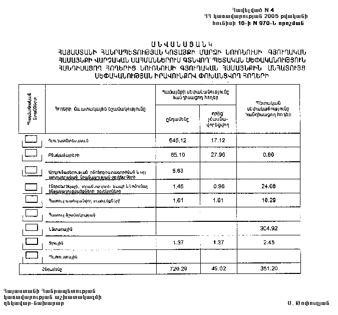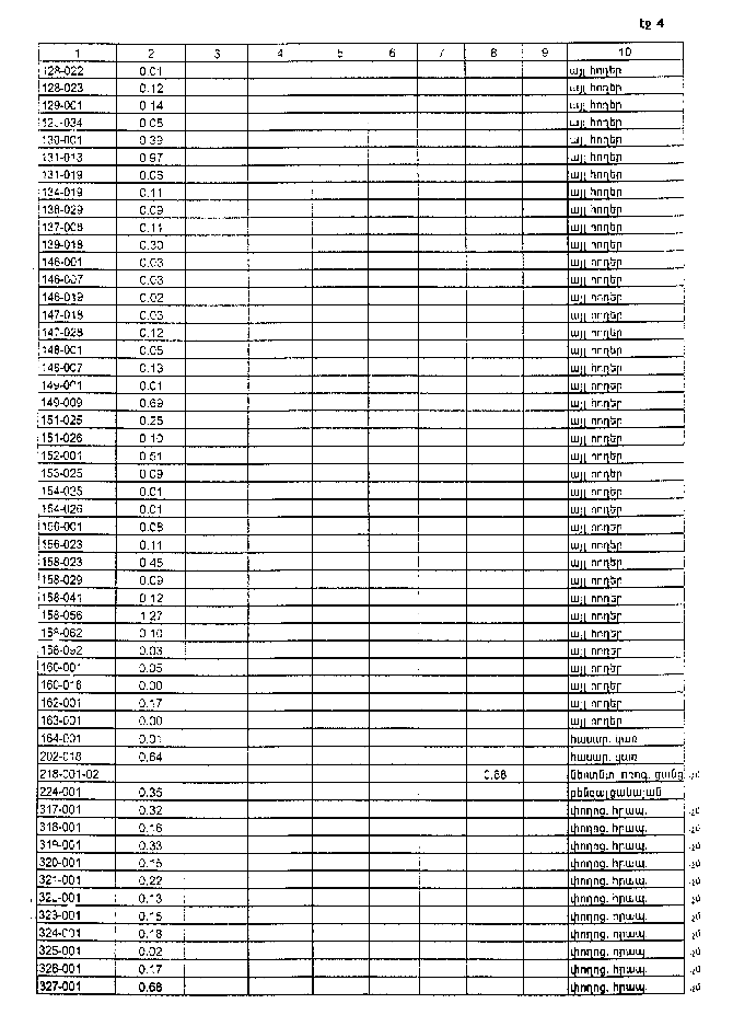 4. Ընդունել ի գիտություն Հայաստանի Հանրապետության Կոտայքի մարզի Նուռնուսի գյուղական համայնքի հողային ֆոնդի առկայության և բաշխման մասին հաշվետվությունը՝ 2005 թվականի հունվարի 1-ի դրությամբ՝ համաձայն NN 8 և 9 հավելվածների: