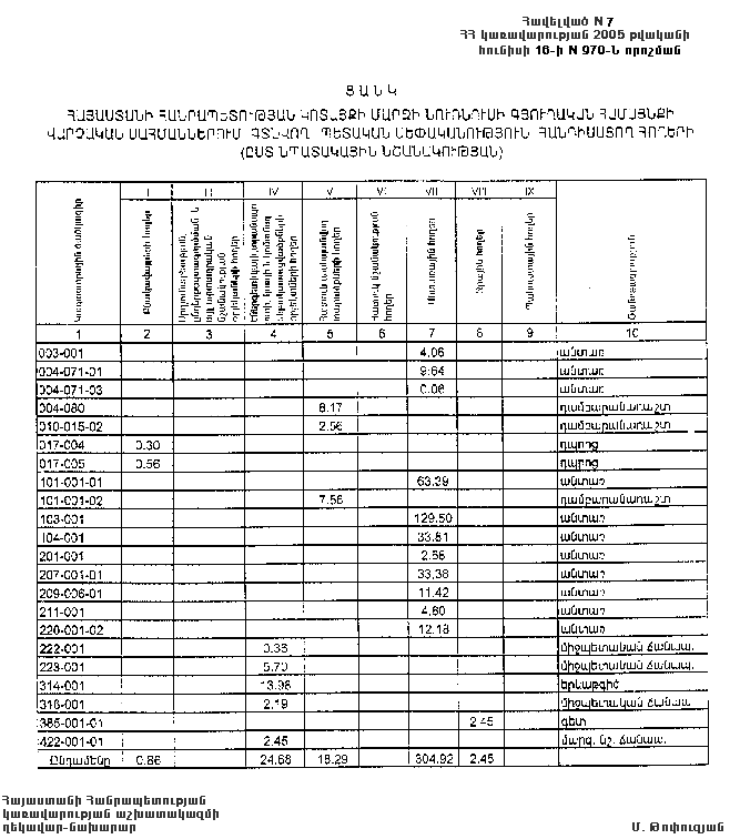 7. Հայաստանի Հանրապետության Կոտայքի մարզպետին՝ Հայաստանի Հանրապետության կառավարության 2000 թվականի հոկտեմբերի 23-ի N 656 որոշմամբ սահմանված կարգով՝ սկզբնական հաշվառման տվյալների հիման վրա ապահովել մարզի տարածքում ընթացիկ հաշվառման աշխատանքների իրականացումը: