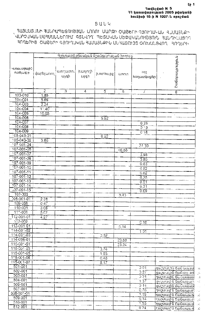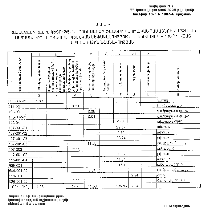 16 հունիսի 2005 թվականի N 1007-Ն