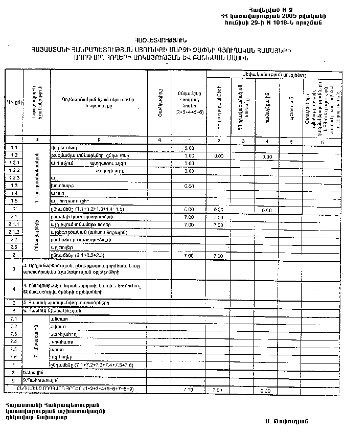 7. Հայաստանի Հանրապետության Սյունիքի մարզպետին՝ Հայաստանի Հանրապետության կառավարության 2000 թվականի հոկտեմբերի 23-ի N 656 որոշմամբ սահմանված կարգով՝ սկզբնական հաշվառման տվյալների հիման վրա ապահովել մարզի տարածքում ընթացիկ հաշվառման աշխատանքների իրականացումը: