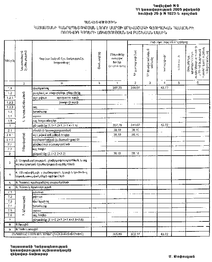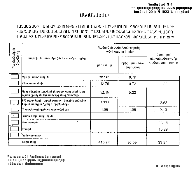 4. Ընդունել ի գիտություն Հայաստանի Հանրապետության Լոռու մարզի Արևածագի գյուղական համայնքի հողային ֆոնդի առկայության և բաշխման մասին հաշվետվությունը՝ 2005 թվականի հունվարի 1-ի դրությամբ՝ համաձայն NN 8 և 9 հավելվածների: