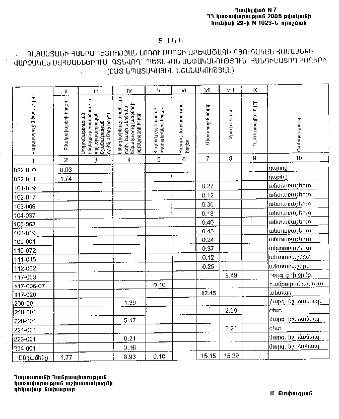 7. Հայաստանի Հանրապետության Լոռու մարզպետին՝ Հայաստանի Հանրապետության կառավարության 2000 թվականի հոկտեմբերի 23-ի N 656 որոշմամբ սահմանված կարգով՝ սկզբնական հաշվառման տվյալների հիման վրա ապահովել մարզի տարածքում ընթացիկ հաշվառման աշխատանքների իրականացումը: